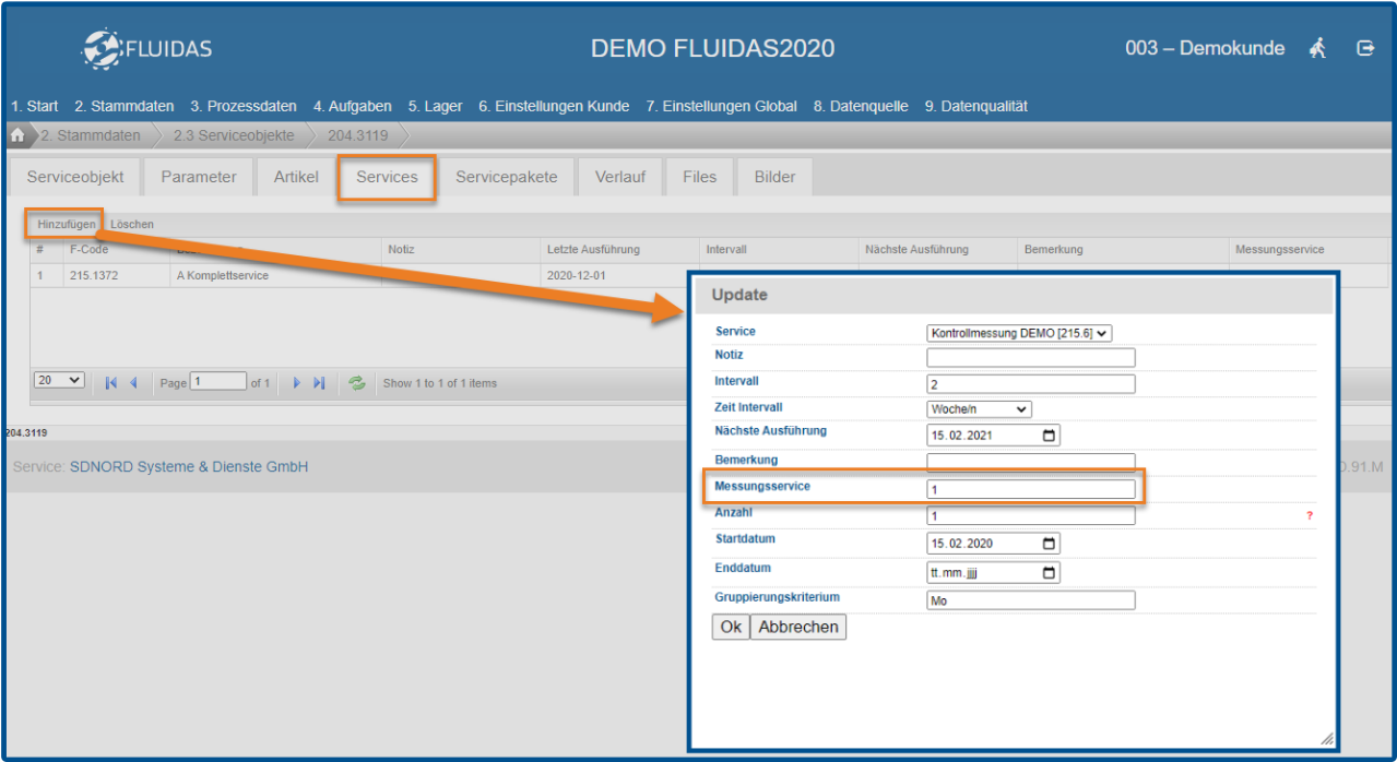 Zuordnung von Artikeln zum Serviceobjekt: